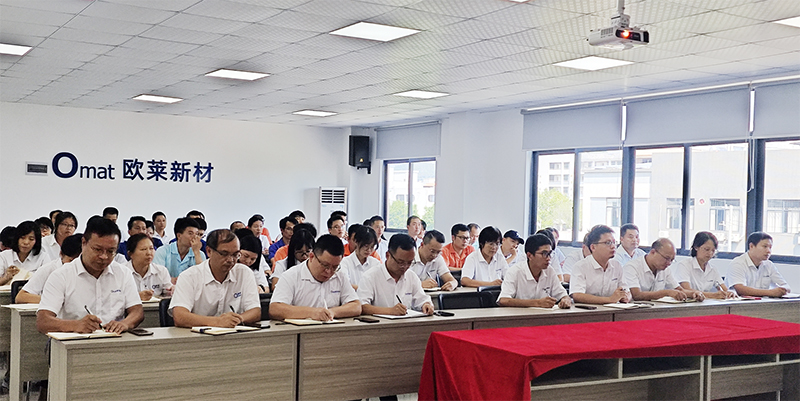 8月26日下午,公司組織了全體干部舉行“培養(yǎng)領導力、戰(zhàn)斗力、迎接新挑戰(zhàn)”專題培訓集中學習,來自歐萊新材總部、東莞公司、合肥公司、乳源公司、深圳公司全體干部線上線下參加,歐萊新材董事長、總經(jīng)理文宏福主持專題培訓集中學習。